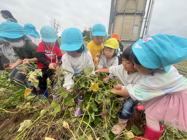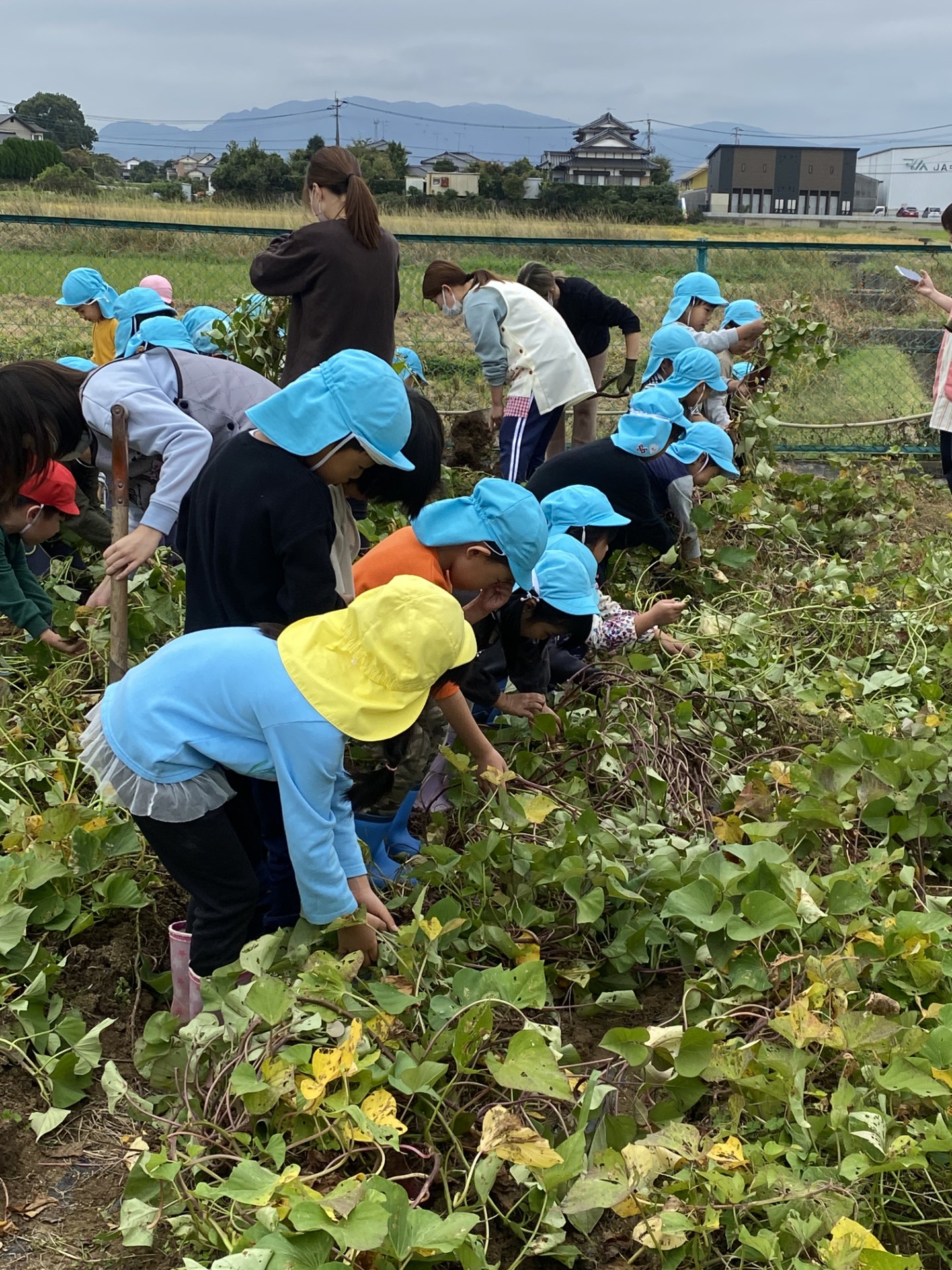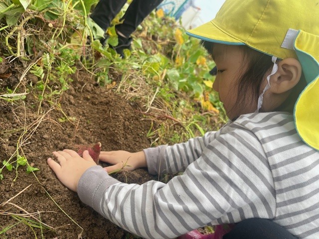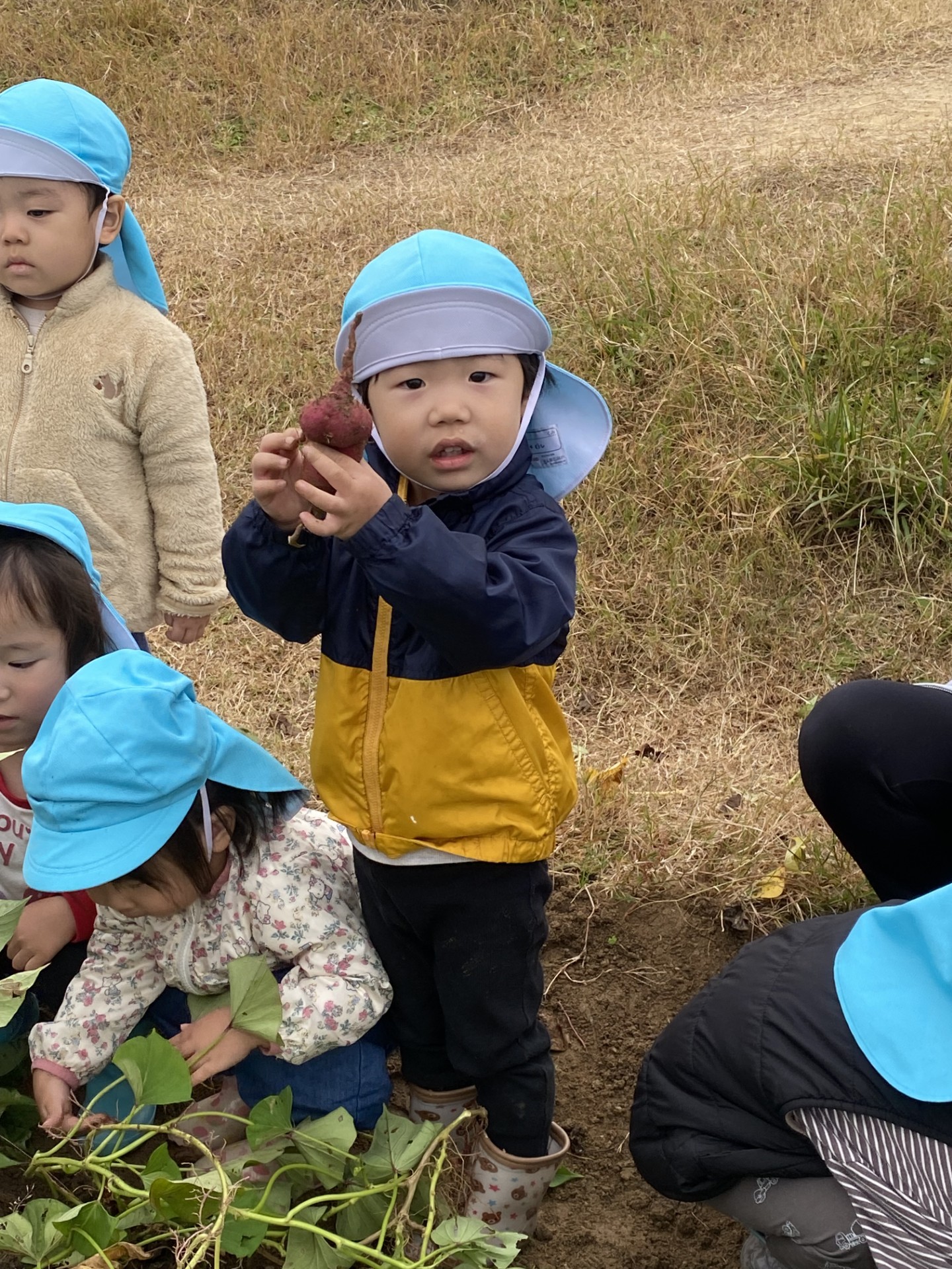 小さい組さんも今日はお芋、葉っぱ、土に触れました。