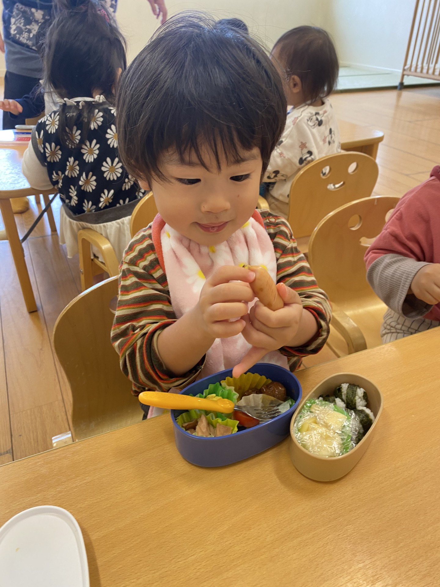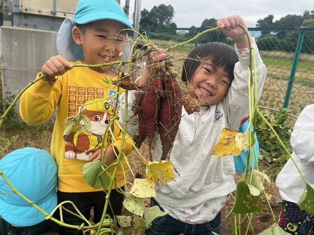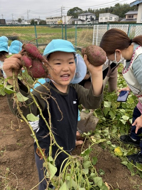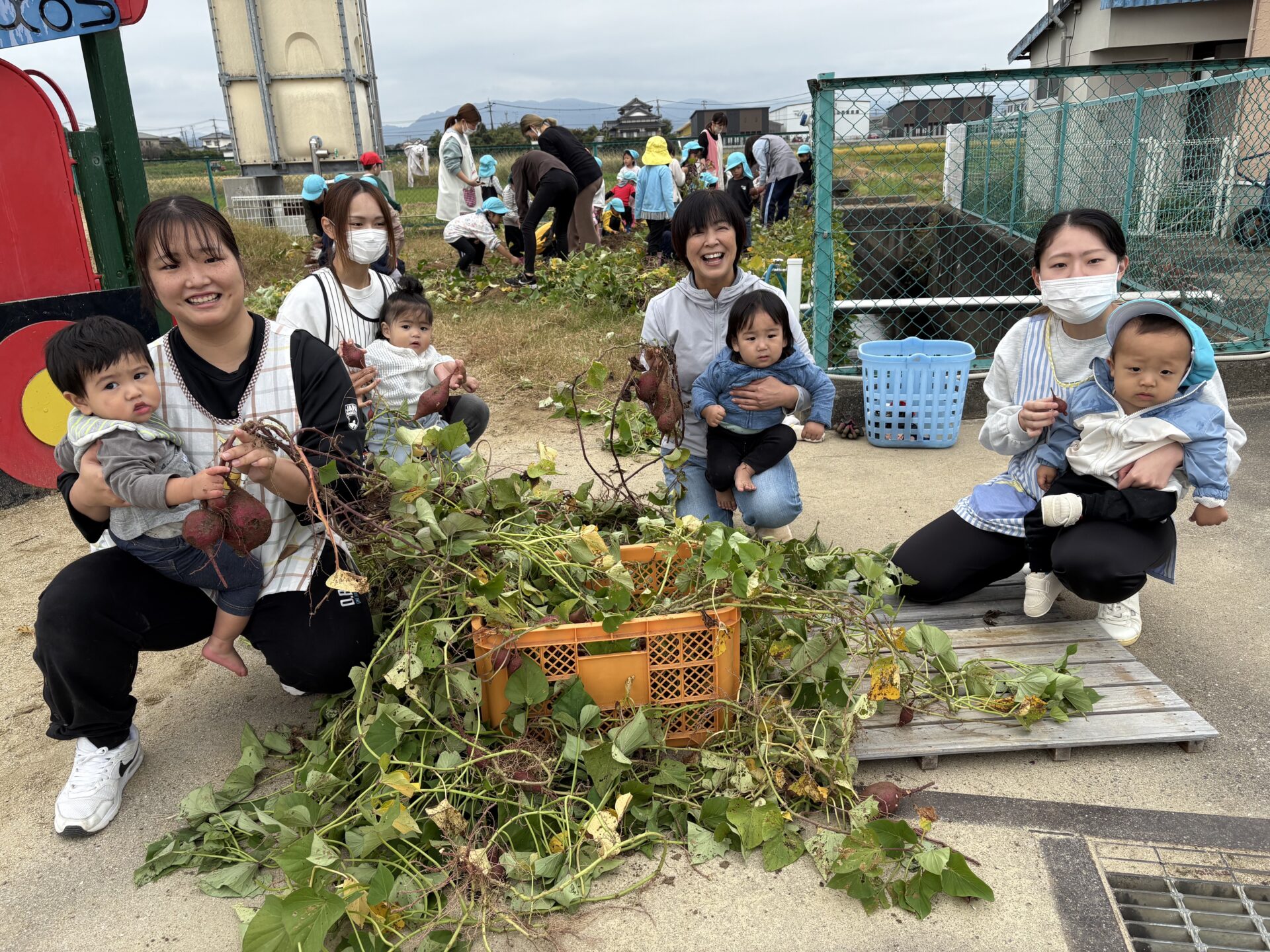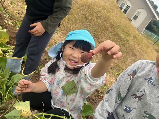 小さい組さんも今日はお芋、葉っぱ、土に触れました。